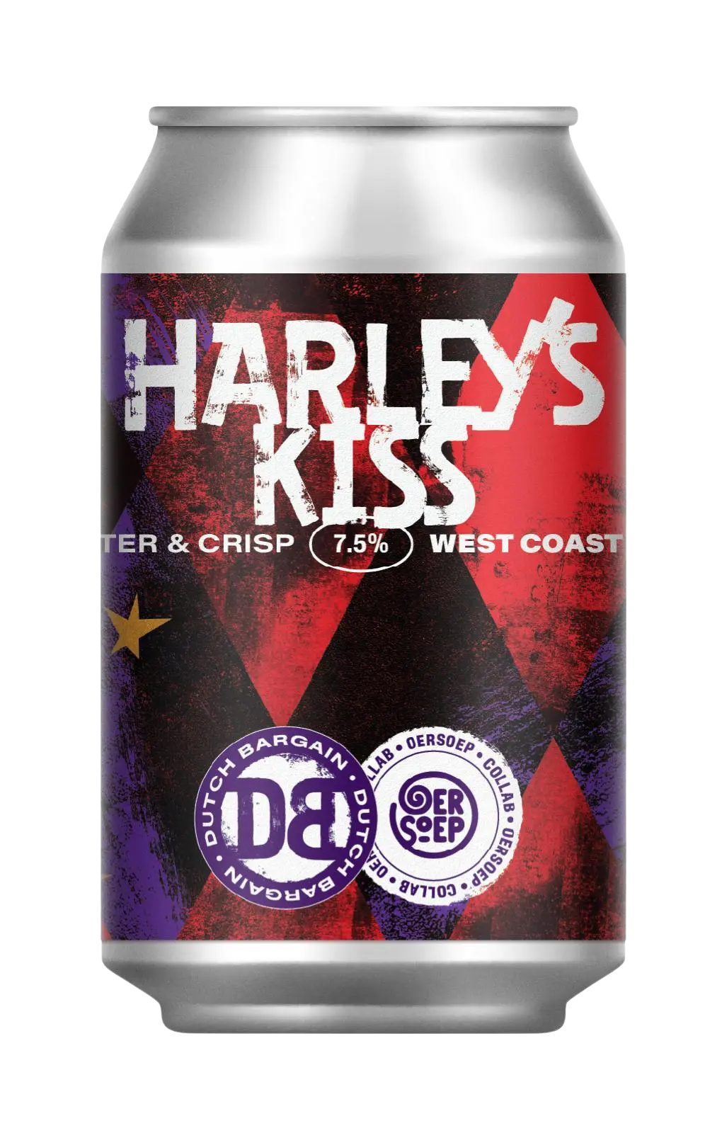 Harley’s Kiss is een West Coast IPA van 7,5%, bitter en knisperend fris, met een diepe gouden kleur (EBC 16) en een stevige bitterheid van 55 IBU. De stevige basis zorgt voor een volle mond en een zachte body, terwijl de combinatie van de hoppen Harlequin, Godiva en Abstrax Krush hops een explosie van tropisch fruit, passievrucht en perzik loslaat.