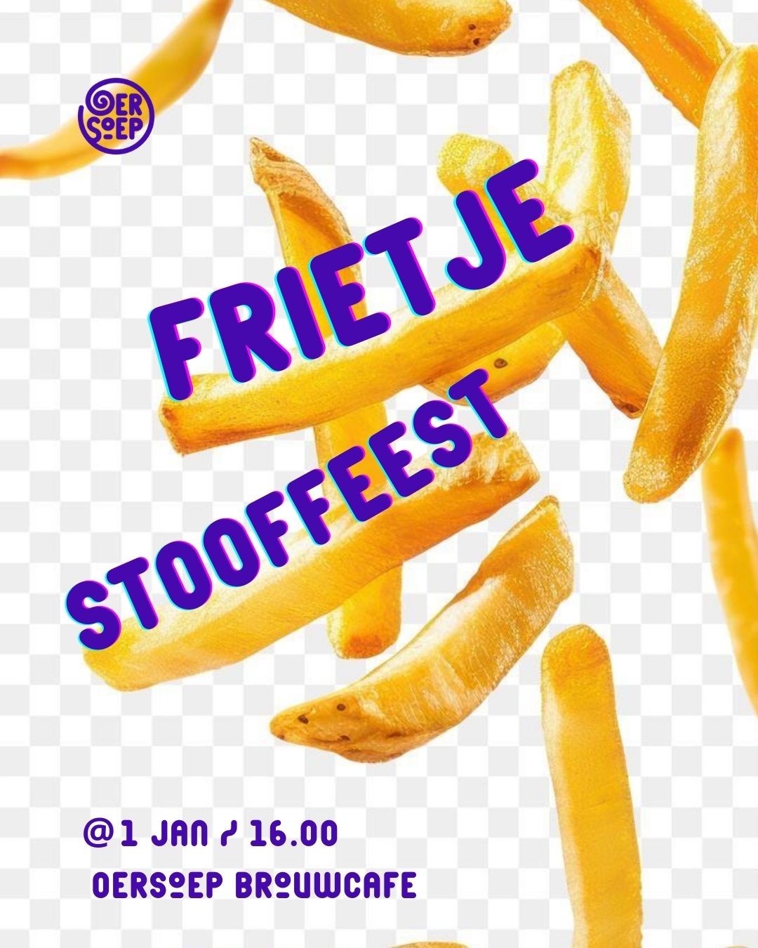 Het nieuwe jaar beginnen doe je bij FRIETJE STOOFFEEST. Terwijl sommigen in Nederland een frisse nieuwjaarsduik nemen, duiken wij gewoon in de frieten! Knapperig, warm en met een smeuïge klodder stoofvlees: pure muziek in de oren. Of je nu fris en fruitig uit bed stapt of nog een borreltje voelt van gisteravond, op 1 januari om 16.00 uur luiden we in onze gezellige microbrouwerij het nieuwe jaar écht in.