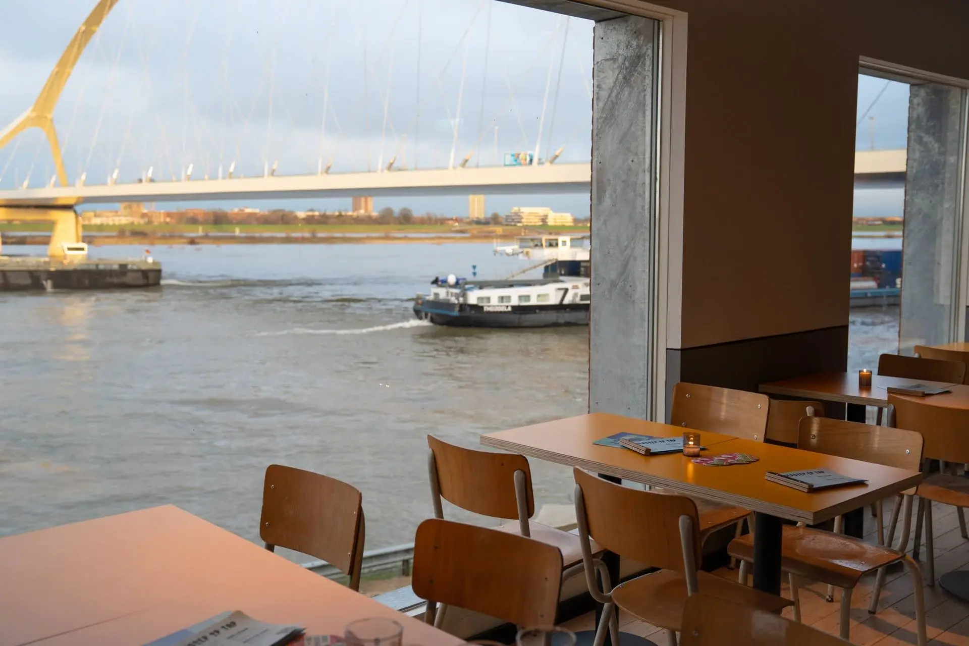 Dankzij de grote ramen en veel daglicht heeft de zaal een frisse en open uitstraling met een prachtig uitzicht over de Waal. Zitplaatsen tot 75 personen maakt de Waalzaal ideaal voor een pubquiz, diner, borrel of bijeenkomst. Gaan de tafels en stoelen aan de kant, dan verandert de zaal in een ruime feestlocatie waar plek is voor een veel groter gezelschap.